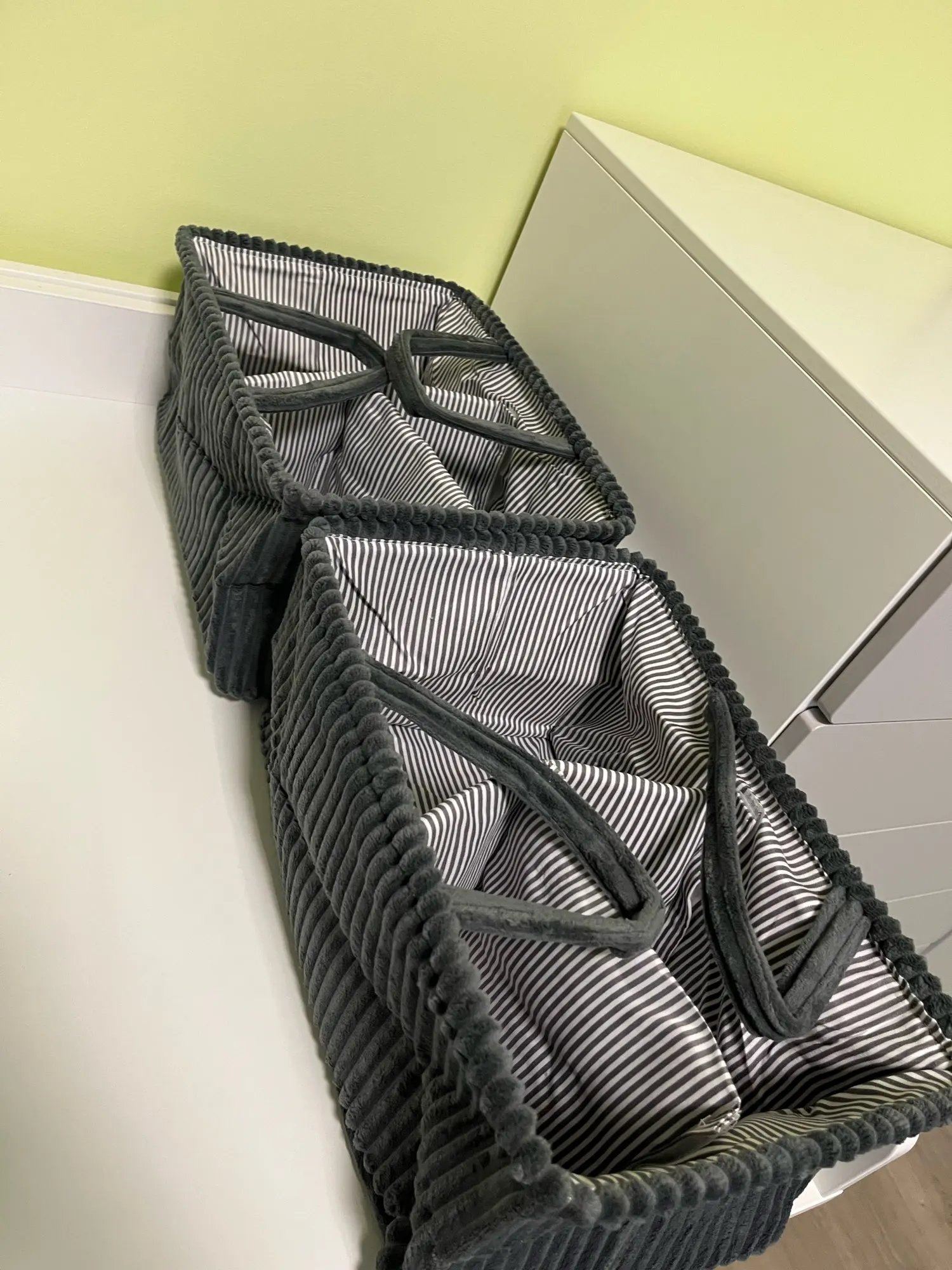 Compartimentos Ajustables: Cuenta con divisores internos robustos que puedes ajustar (o quitar) para personalizar el espacio según tus necesidades (pañales, ropa, biberones, etc.).