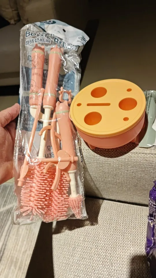 Limpieza de Silicona 360 Grados: Los cabezales de silicona flexible están diseñados para llegar a la base y las esquinas del biberón, y el mango permite una rotación completa de 360°, asegurando que no quede ni un solo residuo de leche.